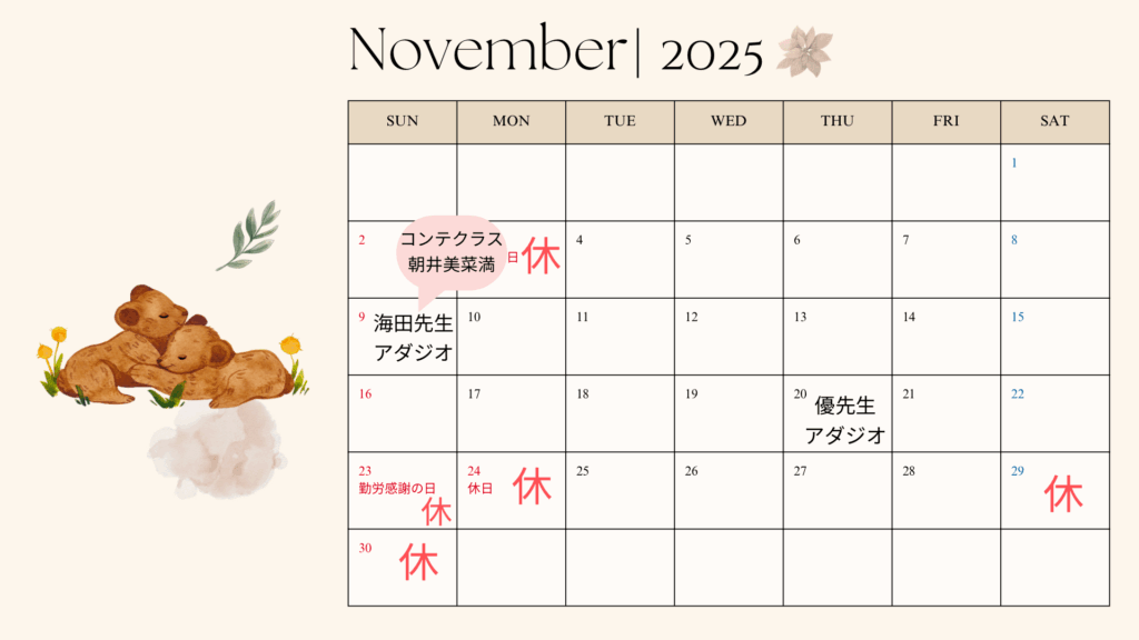 11月のお休み