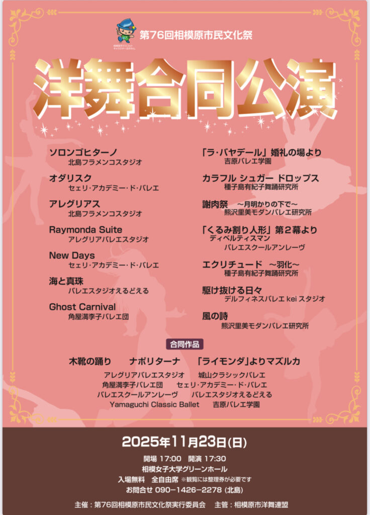 洋舞合同公演が11月23日に行います。今回、うちのスタジオは合同作品だけ出演します。是非、観に来てください。チケットは私まで!